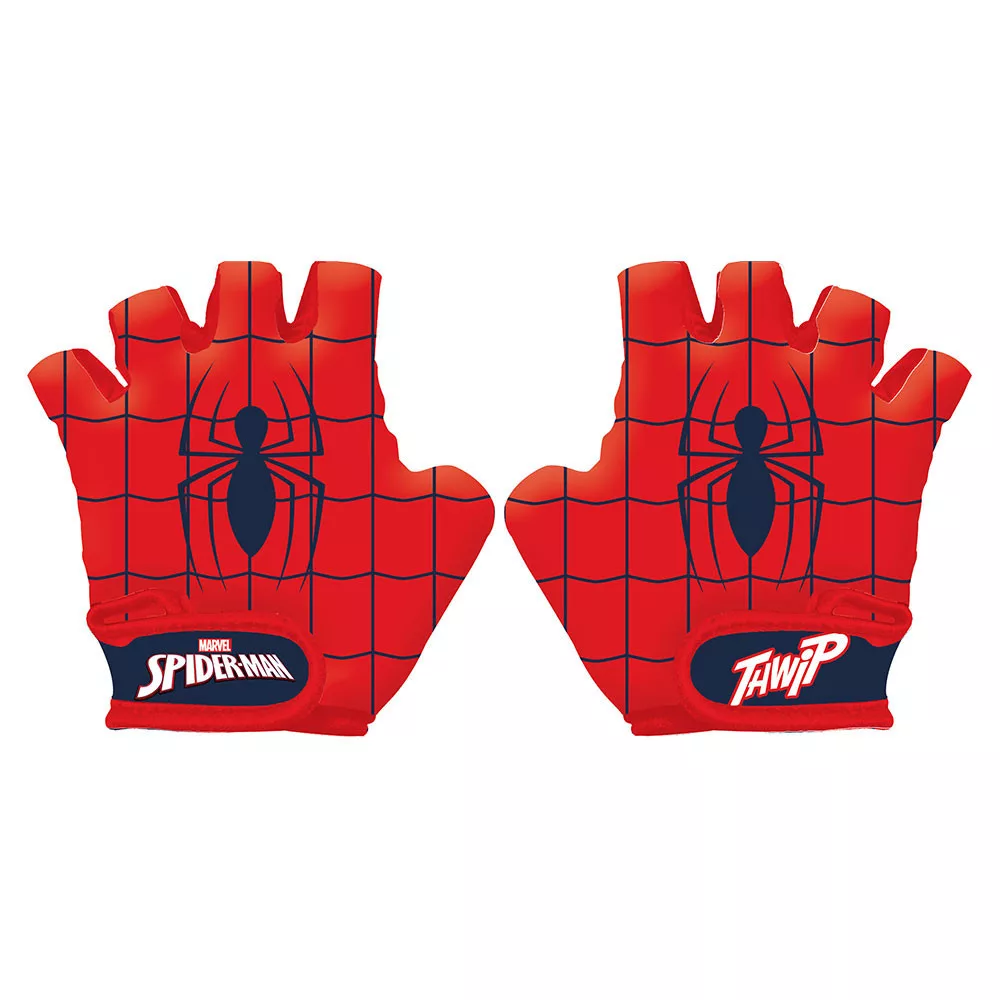 A kerékpáros kesztyűk tartós anyagokból készültek, színes mintával, Pókember karakterekkel díszítve. A kesztyűk tépőzárasak, így könnyen illeszkednek a baba kezére. A kesztyű alja speciális anyaggal van szegélyezve, amely jó párnázottságot biztosít, és lehetővé teszi a gyermek számára, hogy biztonságosan fogja a kormánykereket.