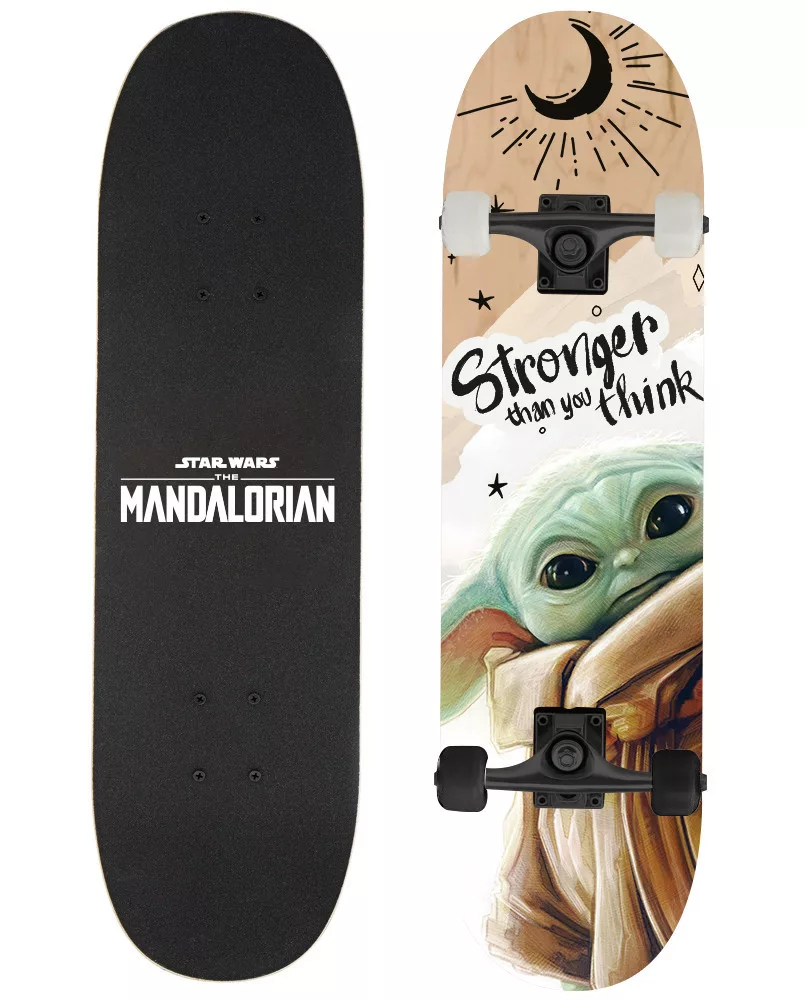 Trendi Star Wars mintákkal díszített, fából készült gördeszka. Ideális járdákon, tereken és városi sikátorokban való használatra. A deszka tartós fából készült, csúszásmentes felülettel rendelkezik, amely tapadást biztosít és növeli a biztonságot.