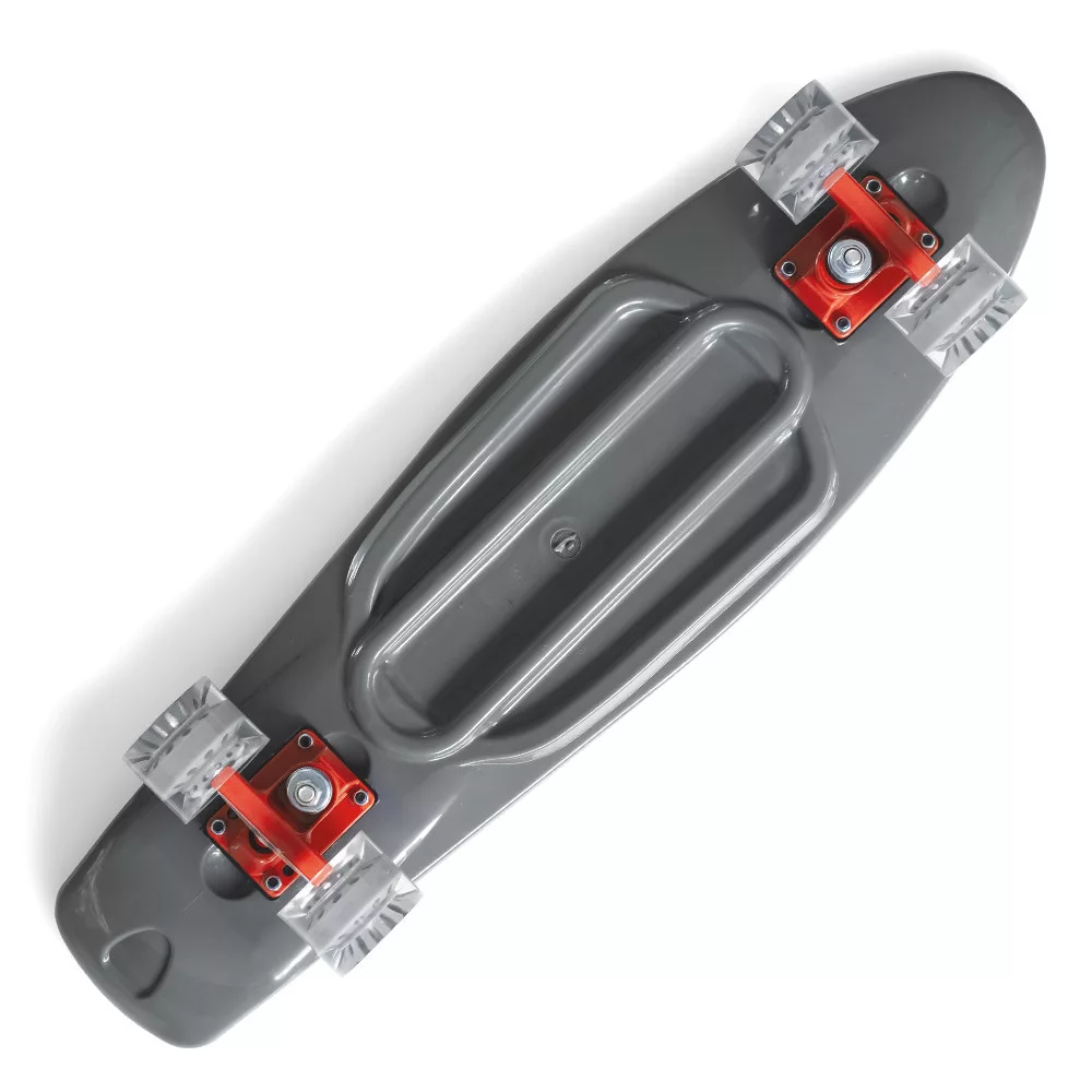 A nikkel gördeszka jelenleg a legnépszerűbb gördeszka modell. Ideális járdákon, tereken és városi sikátorokban való használatra. A széles és puha poliuretán kerekek elnyomják a rezgéseket, így biztosítva a kényelmet gördülés közben. Kiváló minőségű, precíz és könnyű ABEC-7 kerekek, amelyek garantálják a simaságot és a sebességet vezetés közben. A fül lapja tartós műanyagból készült, a csúszásmentes asztallap biztonságos használatot biztosít.