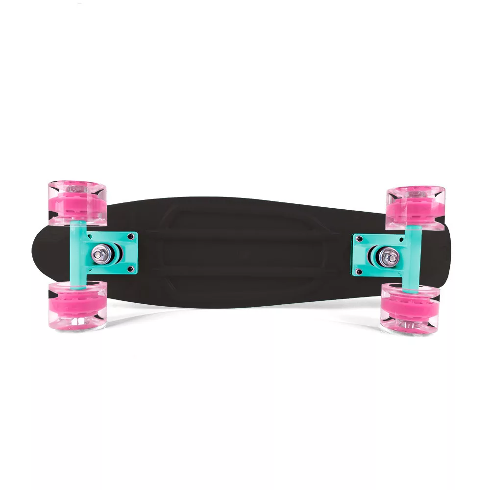 A penny board jelenleg a gördeszka legnépszerűbb modellje. Ideális járdákon, tereken és városi sikátorokban való használatra. A széles és puha poliuretán kerekek elnyomják a rezgéseket, így biztosítva a kényelmet gördülés közben. Kiváló minőségű, precíz és könnyű ABEC-7 kerekek garantálják a simaságot és a sebességet vezetés közben. A fül lapja tartós műanyagból készült, a csúszásmentes asztallap biztonságos használatot biztosít.