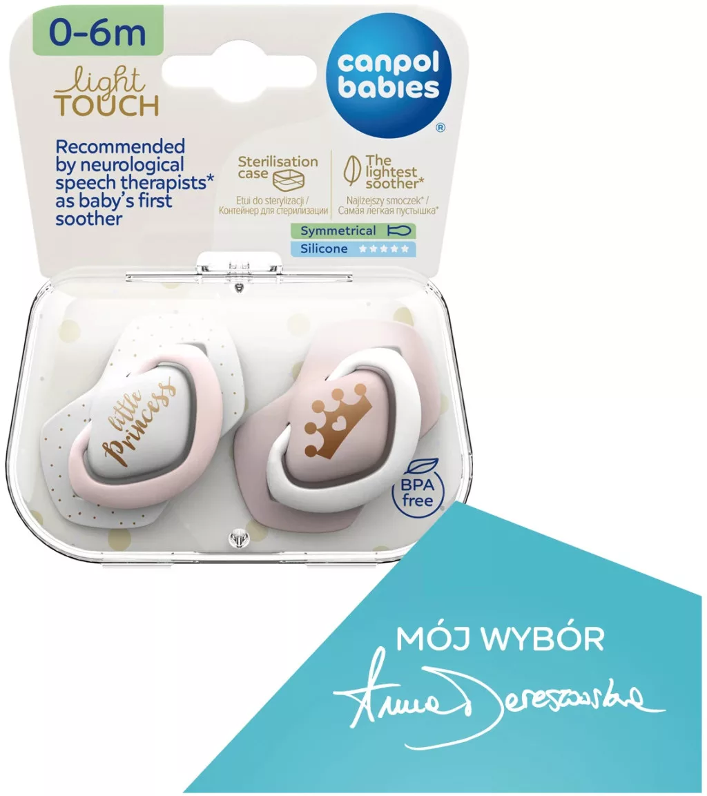 Kis hercegnődet tuti elvarázsolja a Canpol babies Royal Baby cumi. A kivételesen puha végződésnek köszönhetően a cumizás kevesebb erőfeszítést igényel, ami megkönnyíti kislányod számára a cumi elfogadását.