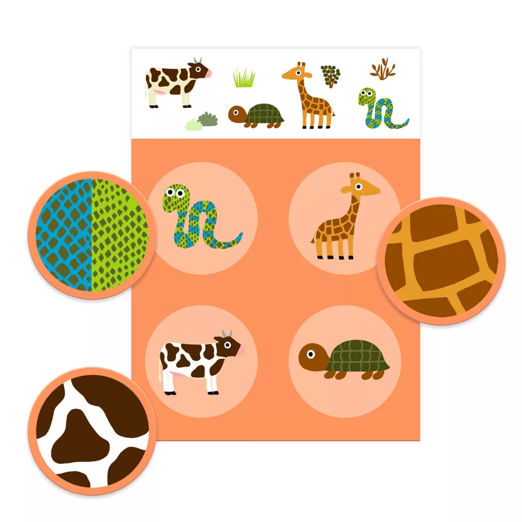 Figyelj jól, és rakd ki a képeslottó darabjait az állatokhoz! A játék során nemcsak szórakozol, hanem észrevétlenül tanulod meg az állatok bőrét, bundáját és tollazatát.