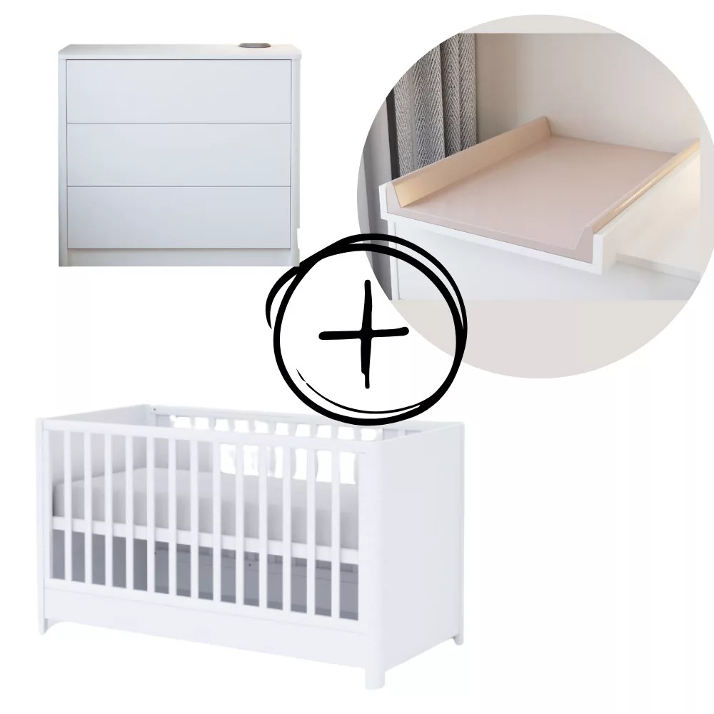 - 3 fiókos komódhoz rendelhető pelenkázó toldalék nem takarja el a komód tetejét teljesen, ezért elegendő helyet hagy a pelenkák és kenőcsök tárolására, ezzel megkönnyítve a kényelmes pelenkázást