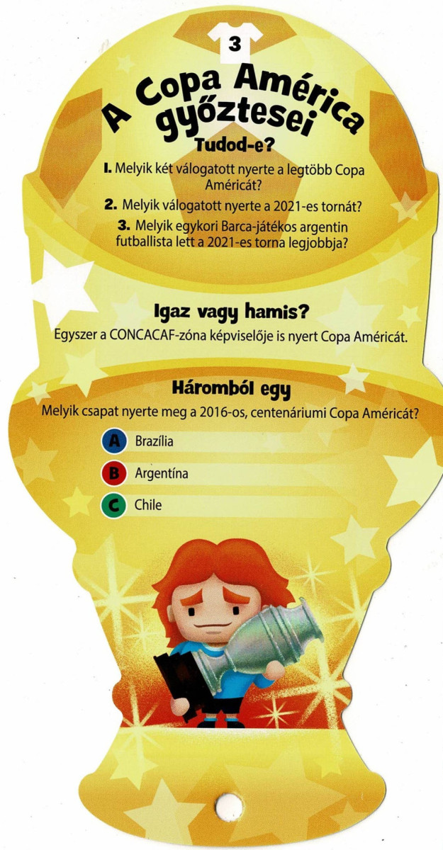 Ezen felül minden kártyán található egy érdekesség vagy kiegészítő információ, amely még jobban elmélyíti a tudást – legyen szó történelmi tényről, sztárokról, stadionokról, rekordokról vagy trófeákról.