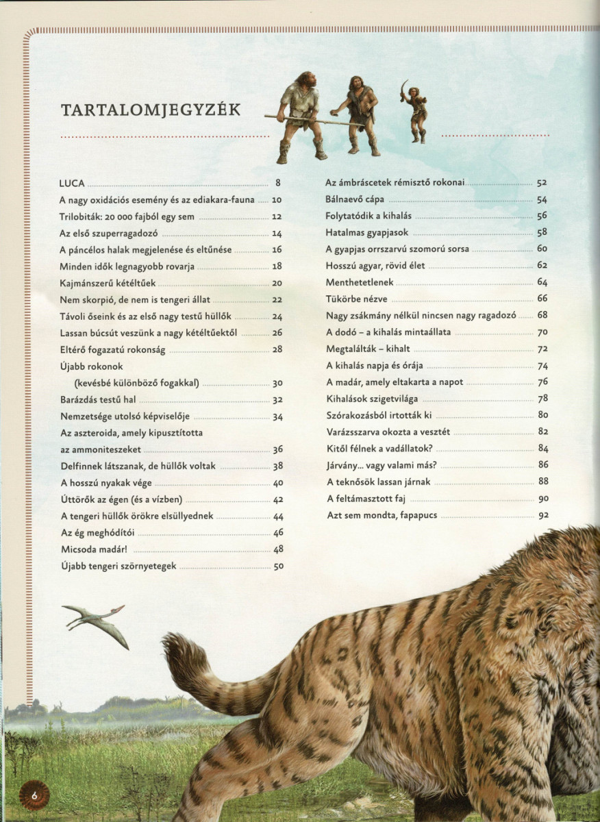 A könyv továbbá bemutatja a legendás Megalodon cápát is, amely 3 méteres fogakkal rendelkezett, és bálnákkal táplálkozott. Ez az óriási ragadozó több mint 20 millió éven át barangolt a világ tengerein, mielőtt a Panama-földszoros kialakulása miatt végleg eltűnt volna.