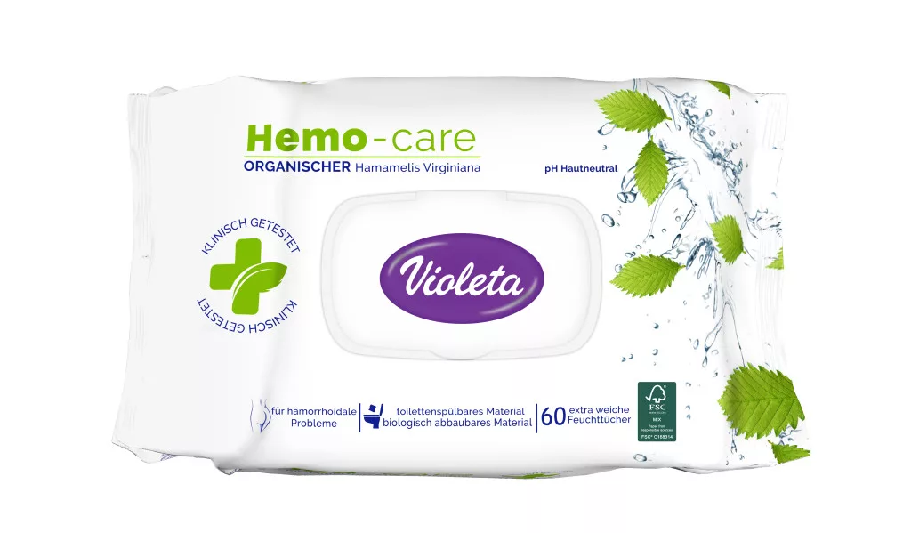 Violeta nedves toalettpapír Hemo Care, 60 db