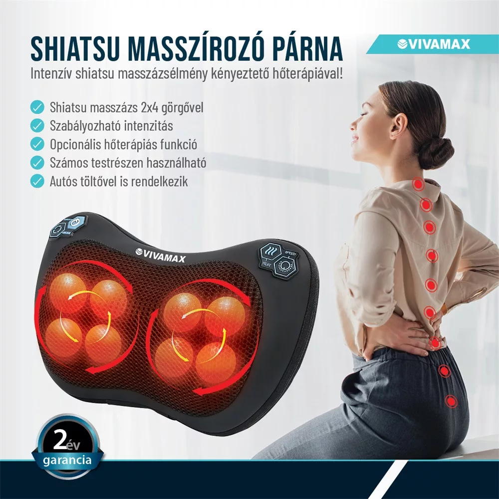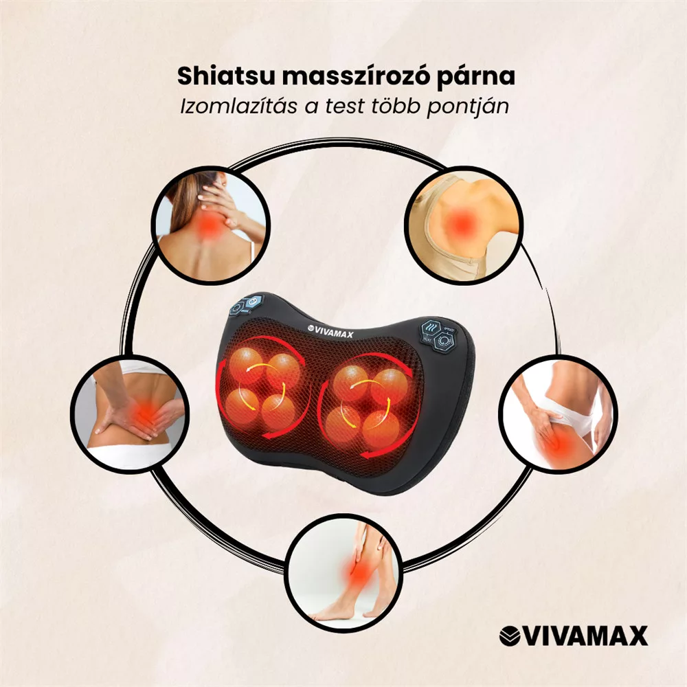 A Vivamax derékmasszírozó készülék shiatsu masszázst kellemes hőterápiával ötvözve szolgálja az Ön kényelmét, testi-lelki felfrissülését és ellazulását!