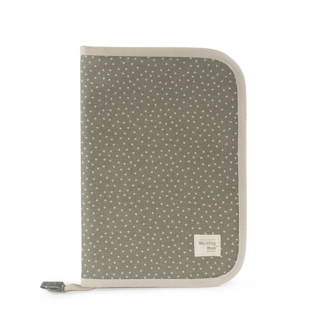 Praktikus és stílusos dokumentumtartó, amely segít rendszerezni a baba legfontosabb papírjait és egészségügyi dokumentumait. Zöld színe és pöttyös mintázata modern, trendi megjelenést kölcsönöz, és jól illik a Walking Mum márka Pöttyös Oliva Kollekciójának pelenkázó hátizsákjaihoz és pelenkázó táskáihoz.