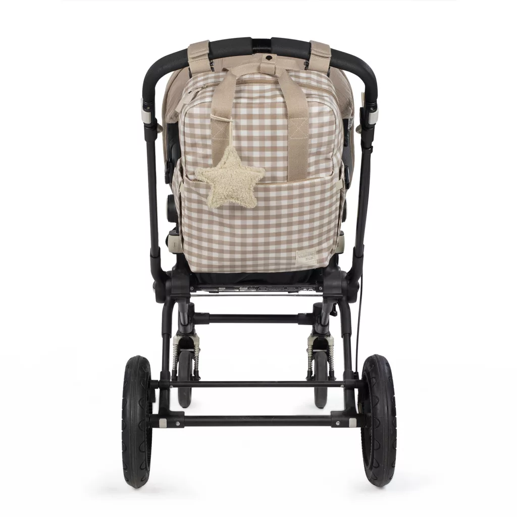 Modern, multifunkciós pelenkázó hátizsák, amely ideális a mindennapi babás sétákhoz és kirándulásokhoz. Bézs kockás designja elegáns, a tágas belső tér és átgondolt zsebezés segítségével minden baba és szülői alapfelszerelést könnyen rendszerezhetsz. A hátizsákhoz mellékelt pelenkázólap tovább növeli használhatóságát.