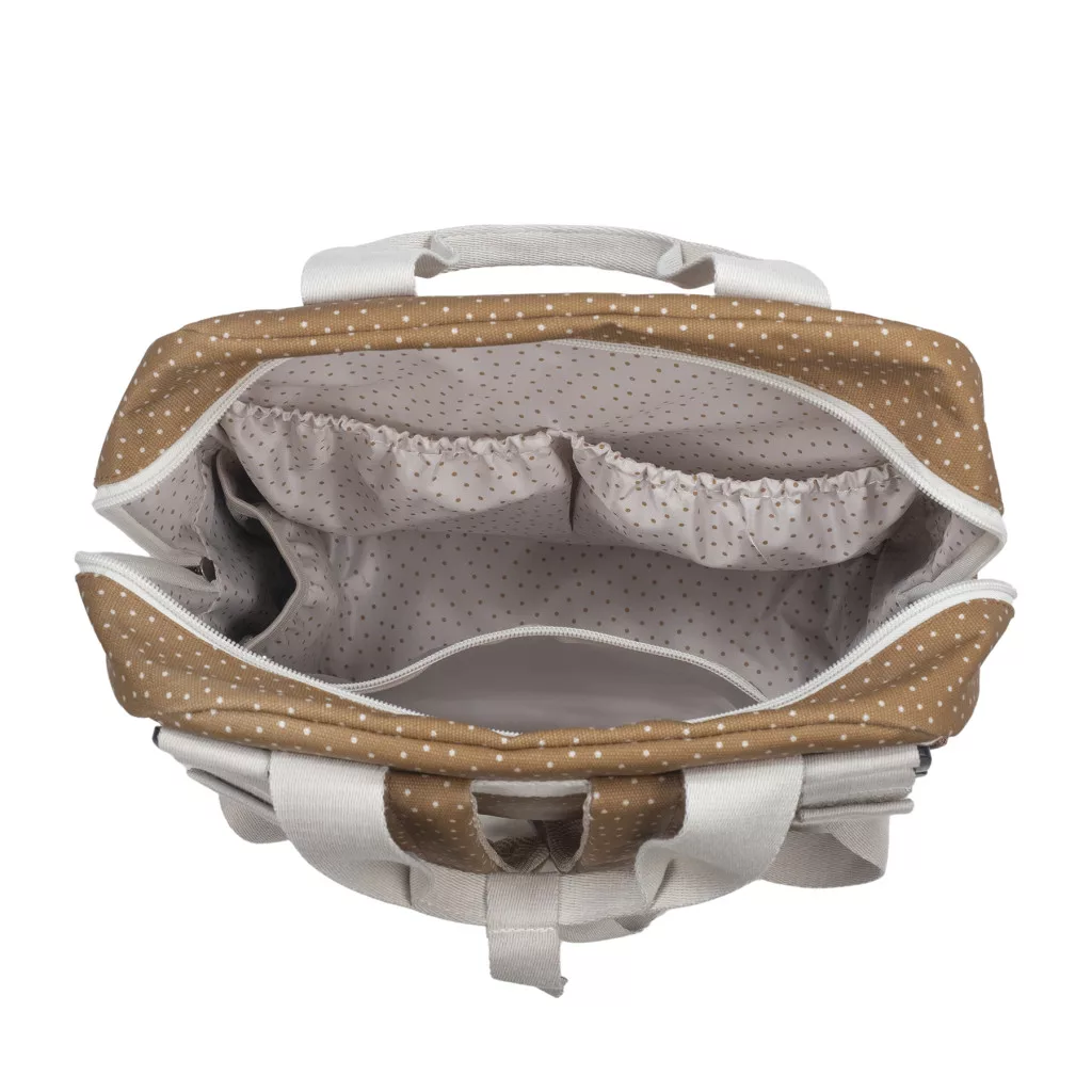 A hátizsákhoz mellékelt pelenkázólap tovább növeli a kényelmet, így útközben is egyszerűen és higiénikusan megoldható a pelenkázás.