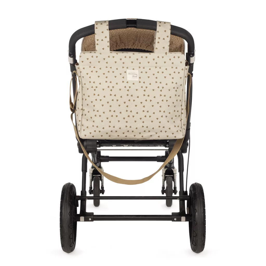 Stílusos és praktikus pelenkázó táska, amely ideális mindennapi babás sétákhoz és kiruccanásokhoz. Szivecskés mintázata vidám, mégis elegáns megjelenést kölcsönöz, miközben tágas belső tere és okosan elhelyezett zsebei segítik a rendszerezett tárolást. A táskához mellékelt pelenkázólap tovább növeli használhatóságát.
