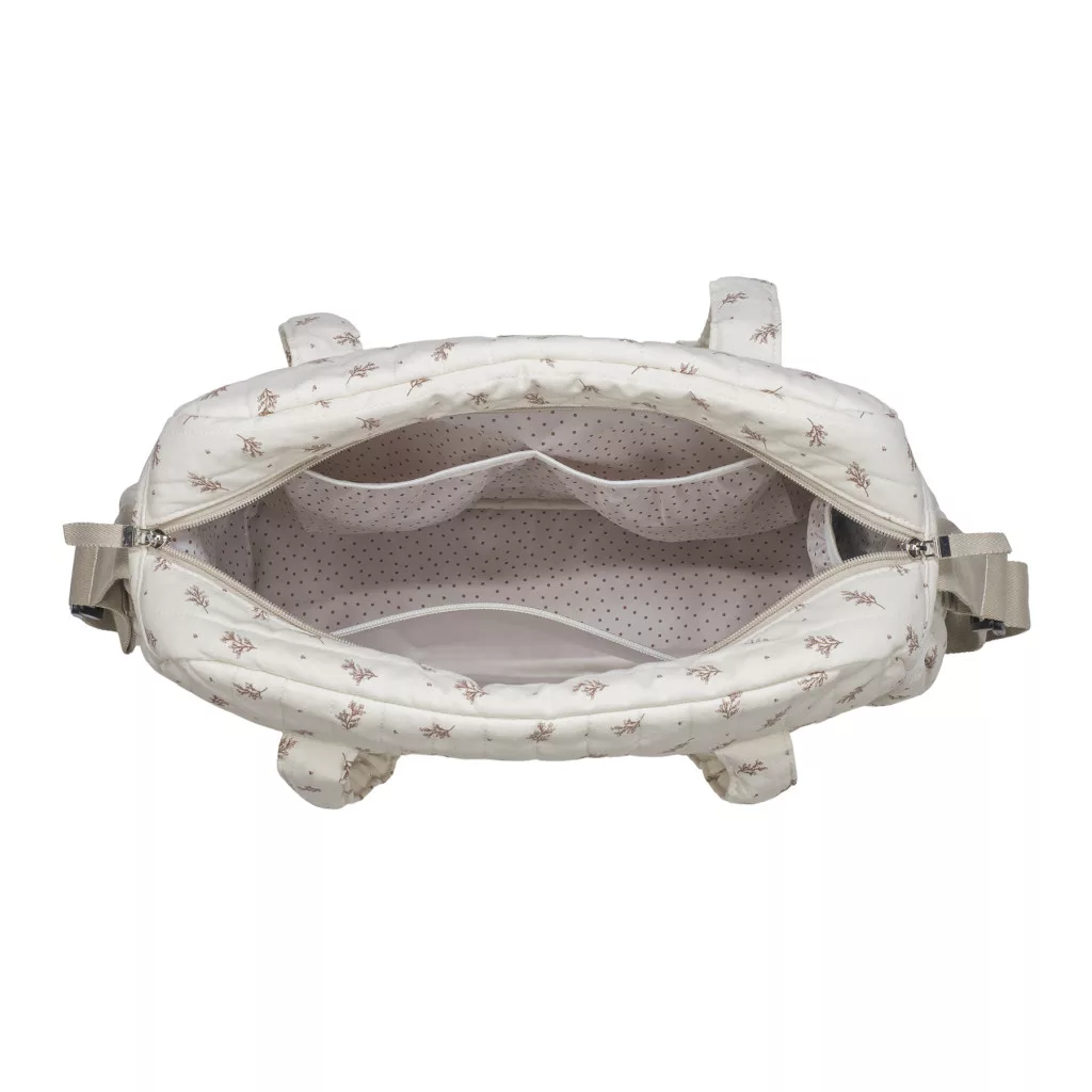 Stílusos és praktikus pelenkázó táska, amely ideális mindennapi babás sétákhoz és kiruccanásokhoz. Rózsaszín virágmintás designja friss, modern megjelenést kölcsönöz, miközben a belső zsebek és rekeszek segítségével minden baba és szülői alapfelszerelés rendszerezetten tárolható. A hátizsákhoz mellékelt pelenkázólap tovább növeli használhatóságát.
