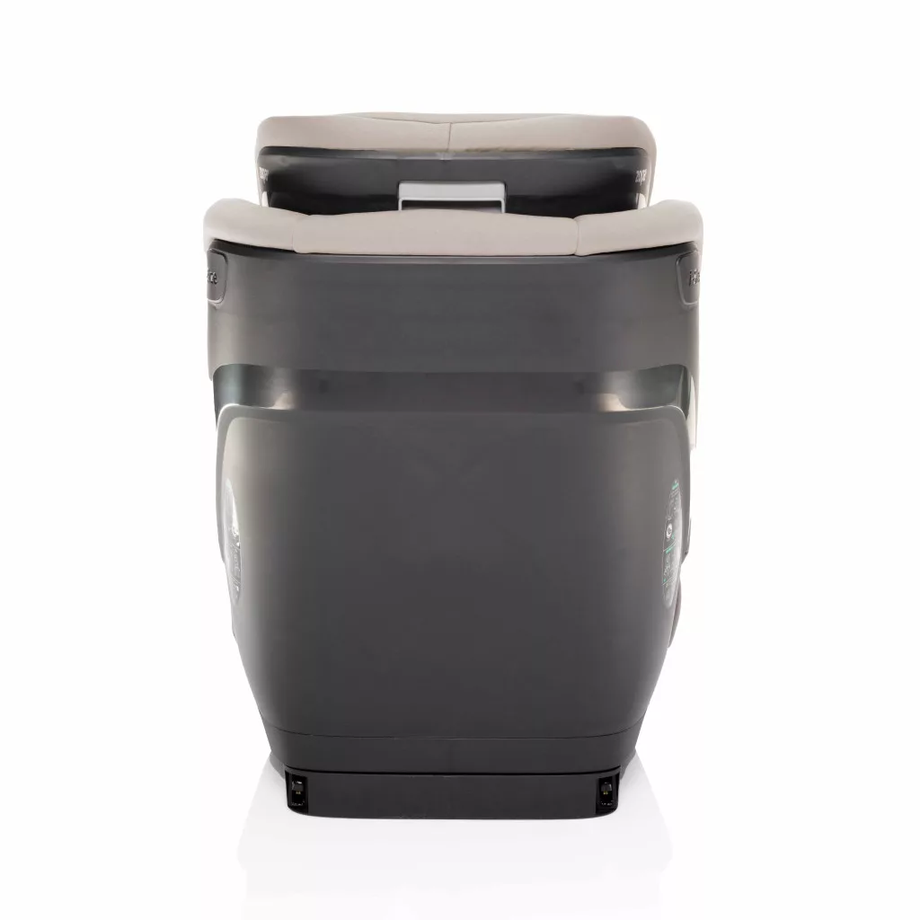 Frontális ütközés esetére az ülés SP PAD-del van felszerelve, amely csökkenti a fej, a nyak és a mellkas terhelését. A Belt Lock funkció egy negyedik rögzítési pontot ad hozzá, amely frontális ütközés esetén csökkenti a hasra nehezedő nyomást. Az integrált oldalsó védelem (SIP) az ülés teljes hosszában védi a gyermeket, beleértve az alsó részt is. A legújabb i-SIZE szabvány teljesítése garantálja a biztonságot a használat teljes időtartama alatt.