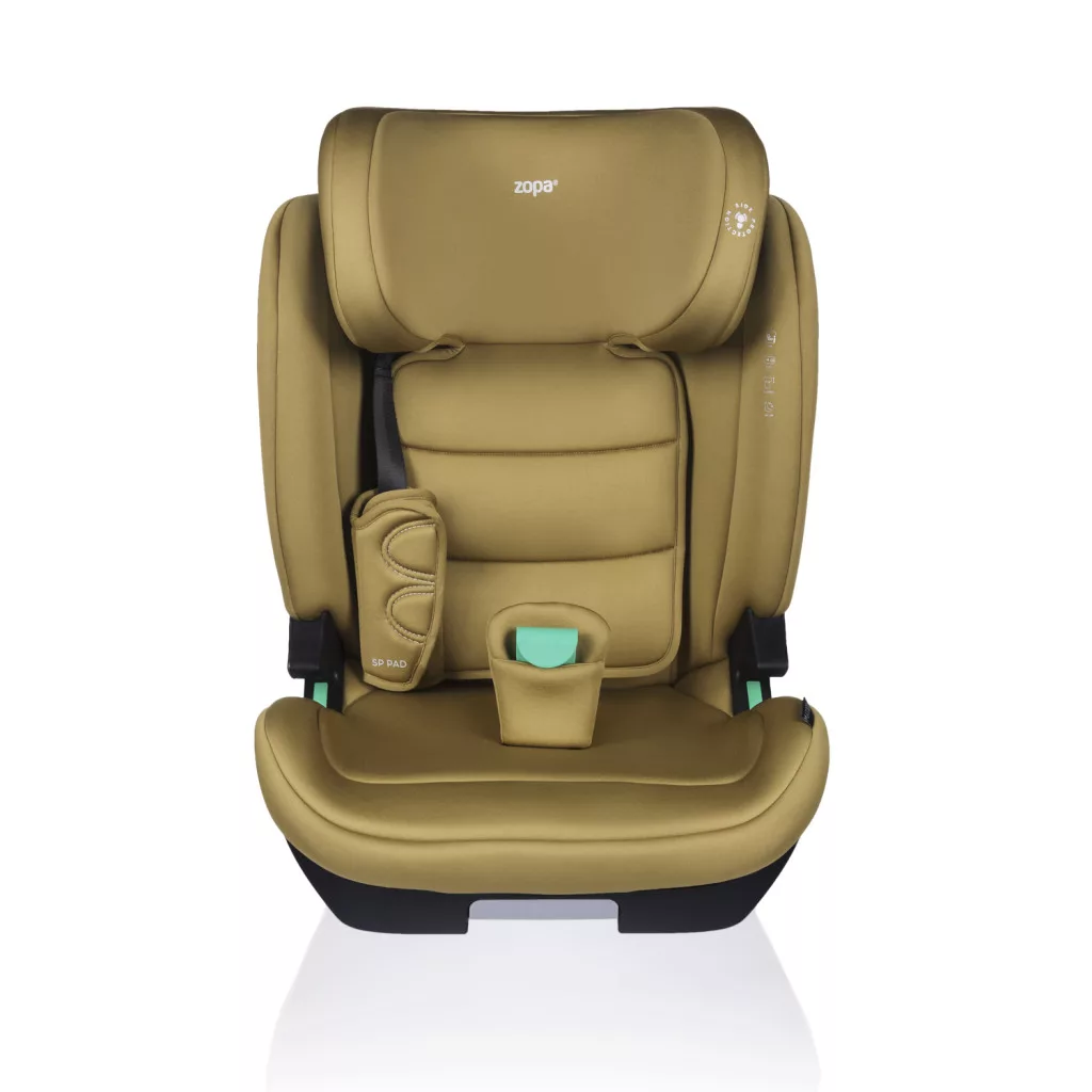 Frontális ütközés esetére az ülés SP PAD-del van felszerelve, amely csökkenti a fej, a nyak és a mellkas terhelését. A Belt Lock funkció egy negyedik rögzítési pontot ad hozzá, amely frontális ütközés esetén csökkenti a hasra nehezedő nyomást. Az integrált oldalsó védelem (SIP) az ülés teljes hosszában védi a gyermeket, beleértve az alsó részt is. A legújabb i-SIZE szabvány teljesítése garantálja a biztonságot a használat teljes időtartama alatt.