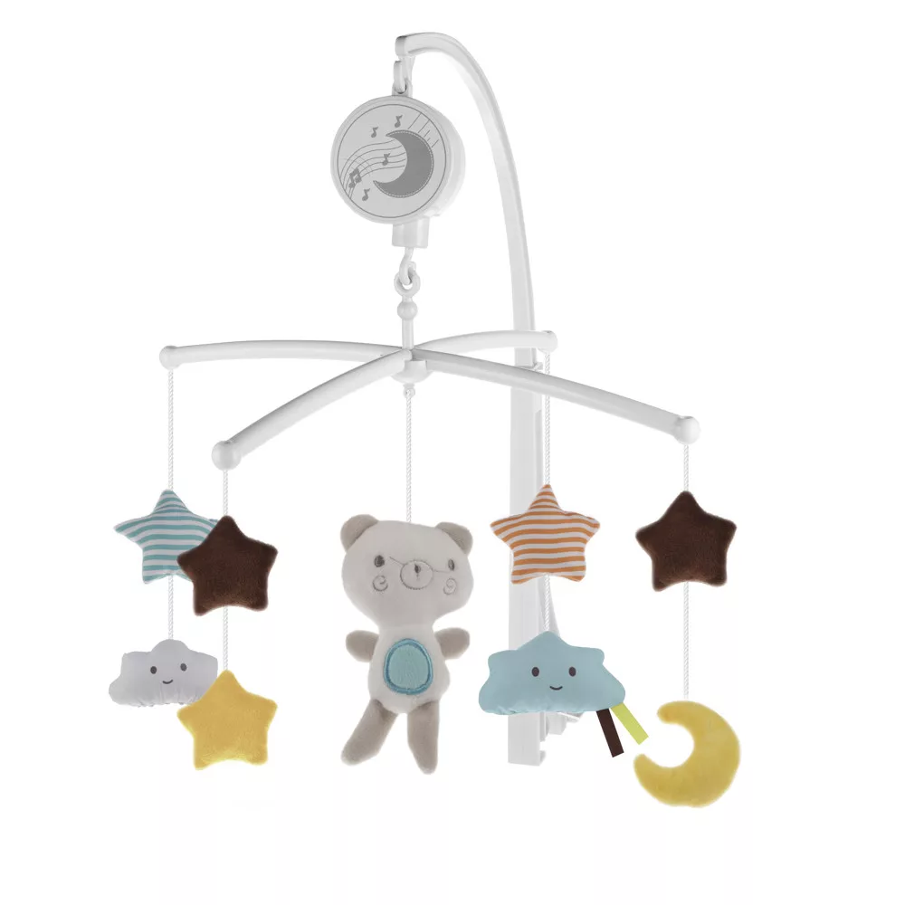 A mozgó plüss játékok finom színekben, természet ihlette motívumokkal, amelyek között egy aranyos állatka dominál, kellemes dallamokkal kísérve, támogatják a gyermek hallását, mozgáskészségét és vizuális érzékelését. A kiságyban kellemes hangulatot teremtenek, amely megnyugtatja a babát és finoman vezeti az álmok birodalmába.