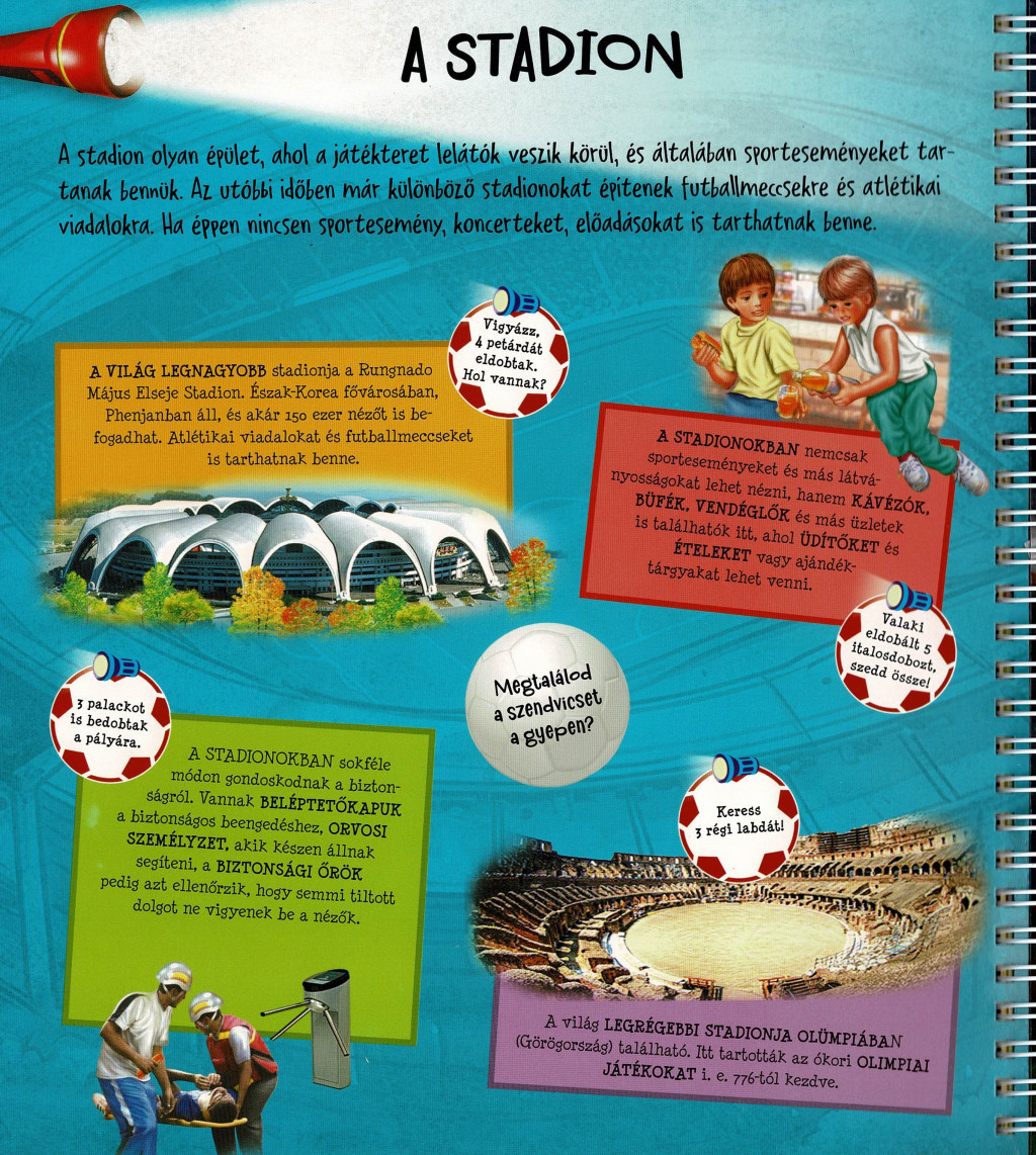 Minden témához tartoznak keresési feladatok: például megtalálni 5 sípot, 3 piros lapot, 4 elgurult labdát vagy egy nem szabályosan öltözött játékost. Ezek az apró részletek segítik a gyerekeket abban, hogy játékos módon tanulják meg a megfigyelés, a koncentráció és a következtetés készségét. A könyv így nemcsak informatív, de kiváló fejlesztőeszköz is – különösen azoknak a gyerekeknek, akik szeretik az aktív felfedezést.