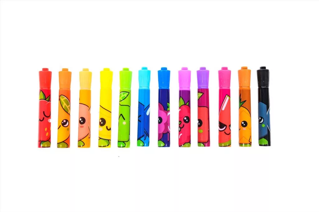 A Canenco FruitySquad Illatos hegyes végű filctollak, melyekből 12 darab különböző színt találsz a csomagban nem csak édesek, de cuki gyümölcsminták is díszítik őket, és mindegyik egy-egy másik árnyalatot jelöl: