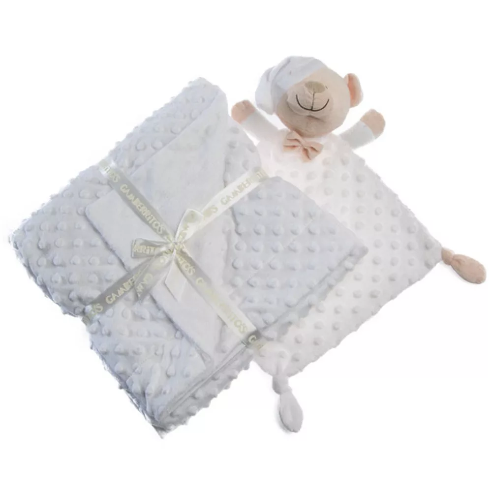 Gamberritos takaró plüss buborékos anyagú 80x110cm plüss szundikendővel maci - fehér