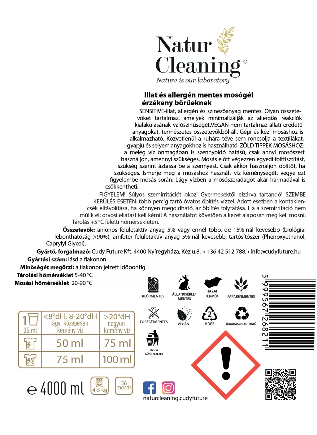 A Naturcleaning Sensitive illat- és allergénmentes mosószer tökéletes választás allergiásoknak, érzékeny bőrűeknek, kismamáknak és kisgyermekes családoknak egyaránt. Ez a Green Brand díjas magyar fejlesztésű termék hatékonyan tisztít, miközben nem terheli sem a szervezeted, sem a környezetet.