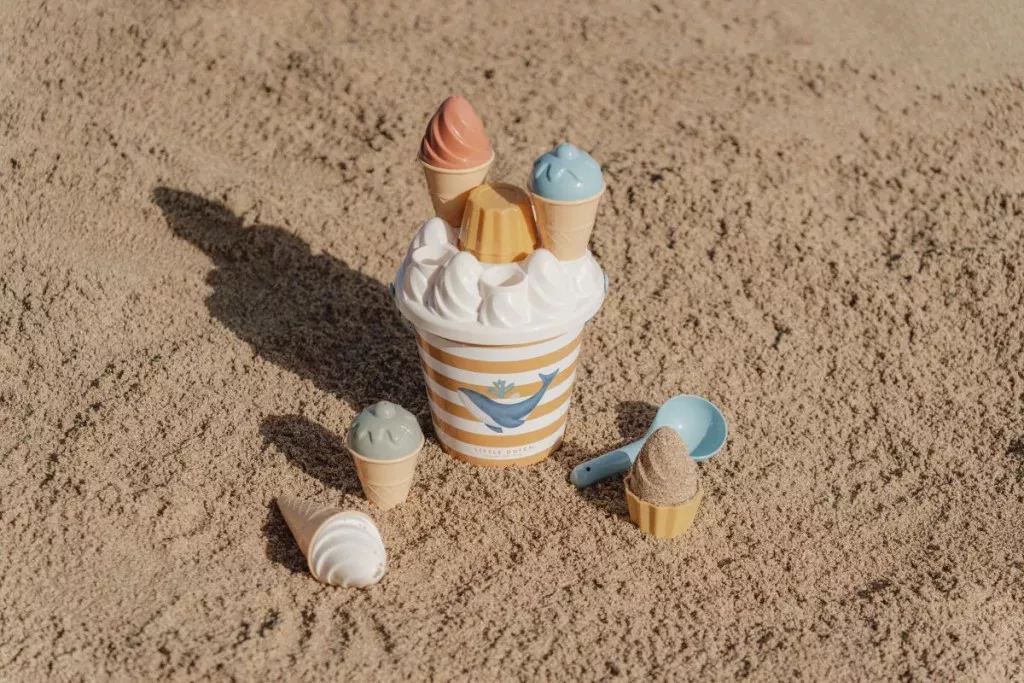 A Little Dutch Ocean Dreams fagyis homokozó szett minden kisgyermek álma, aki szeret a homokban alkotni. A csodás készlet lehetővé teszi a gyerekek számára, hogy „fagylaltgombócokat” formázzanak a homokból – tölcsérrel, kanállal és formával.