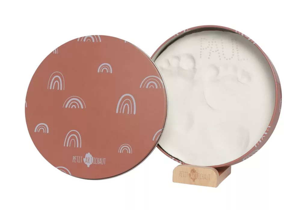 Ez a kör alakú fémdoboz lehetővé teszi, hogy kéz- vagy lábnyomokat készítsen, hogy megörökítse ezeket az egyedi pillanatokat. Harmonikusan illeszkedik a gyermekszoba vagy a ház bármely helyiségének dekorációjához.